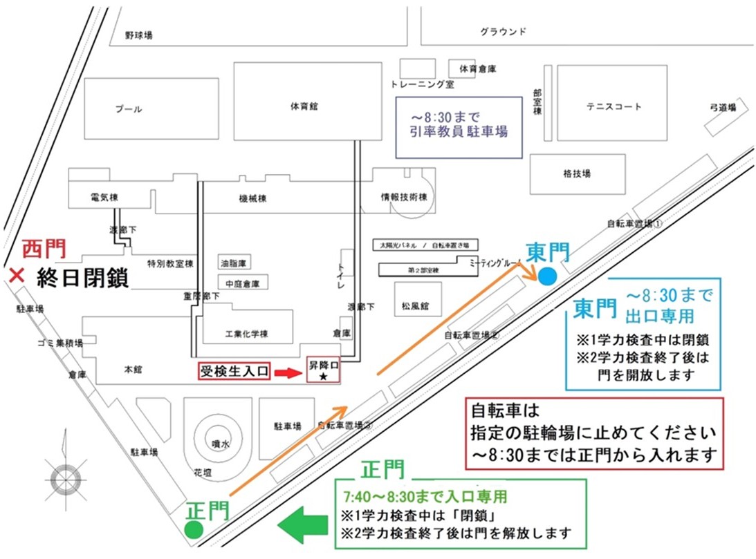- 学力検査終了後のお迎えについては、正門と東門を開放いたします。